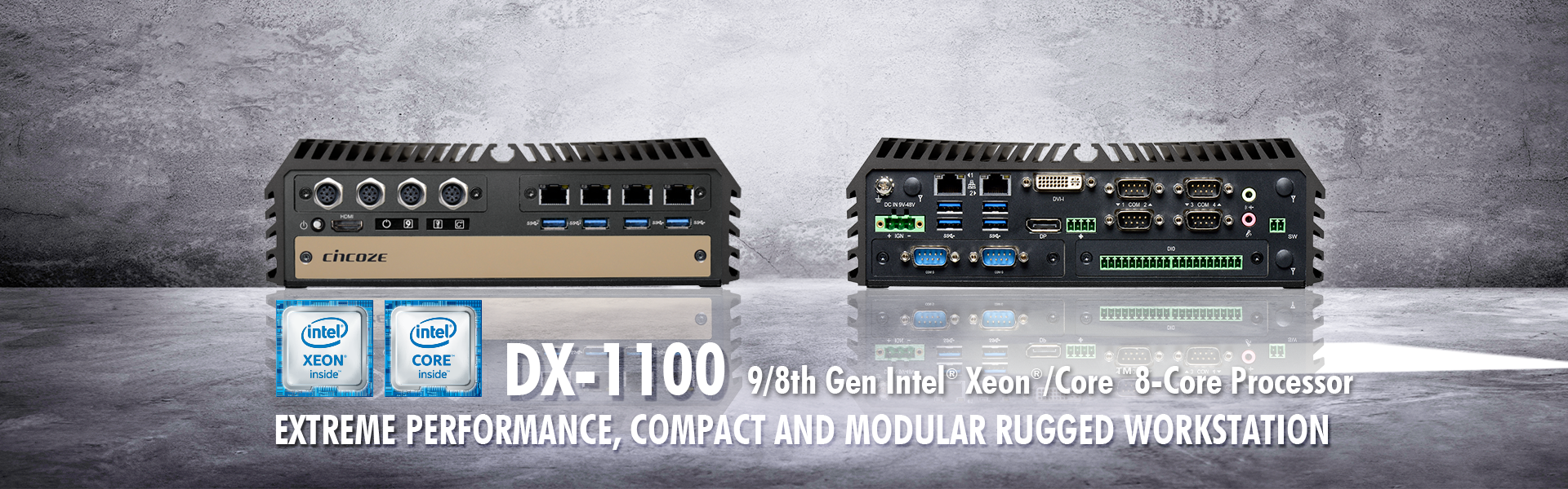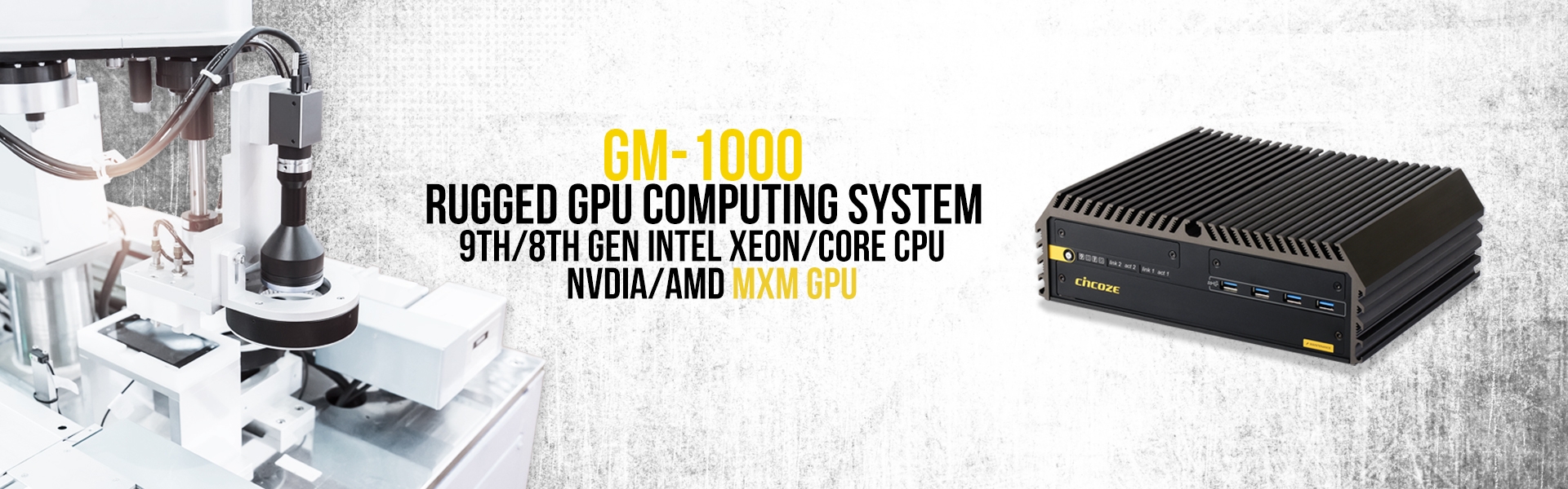 Высокопроизводительный встраиваемый компьютер под управлением процессоров Intel Xeon и Core 9/8-го поколения. Поддерживает установку GPU формата MXM, например Quadro RTX3000, для обработки больших объёмов данных. Возможна установка модуля 2 х 10 Gbit LAN для подключения камер машинного зрения.